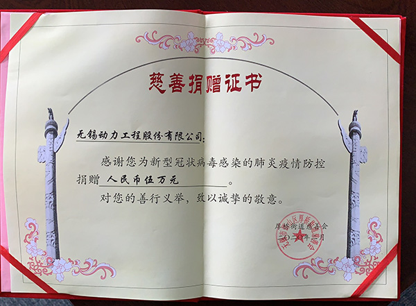 無(wú)錫動(dòng)力心系肺炎疫情,積極承擔(dān)社會(huì)責(zé)任,向無(wú)錫市錫山區(qū)厚橋街道慈善會(huì)捐贈(zèng)人民幣伍萬(wàn)元。另外,由萬(wàn)迪集團(tuán)綜合黨支部發(fā)起,卡仕精密公司參與,黨員和群眾共同籌集善款,計(jì)劃采購(gòu)物資向武漢肺科醫(yī)院捐贈(zèng)醫(yī)療轉(zhuǎn)運(yùn)平車6臺(tái)左右。